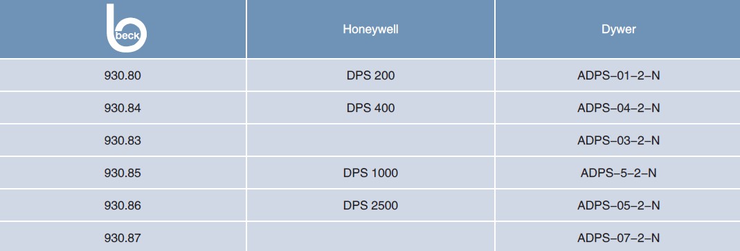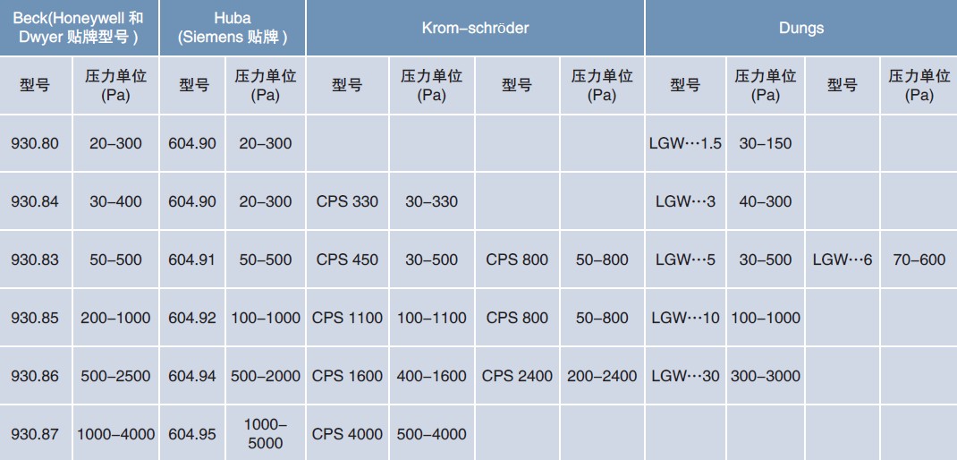 Beck930系列与同类型产品(Huba、Krom-schr?der、Dungs)比较